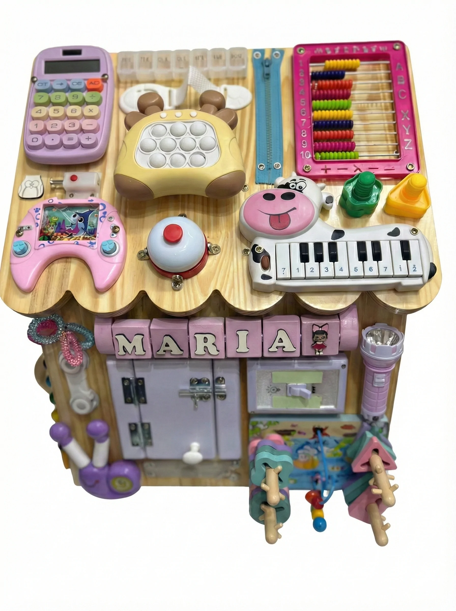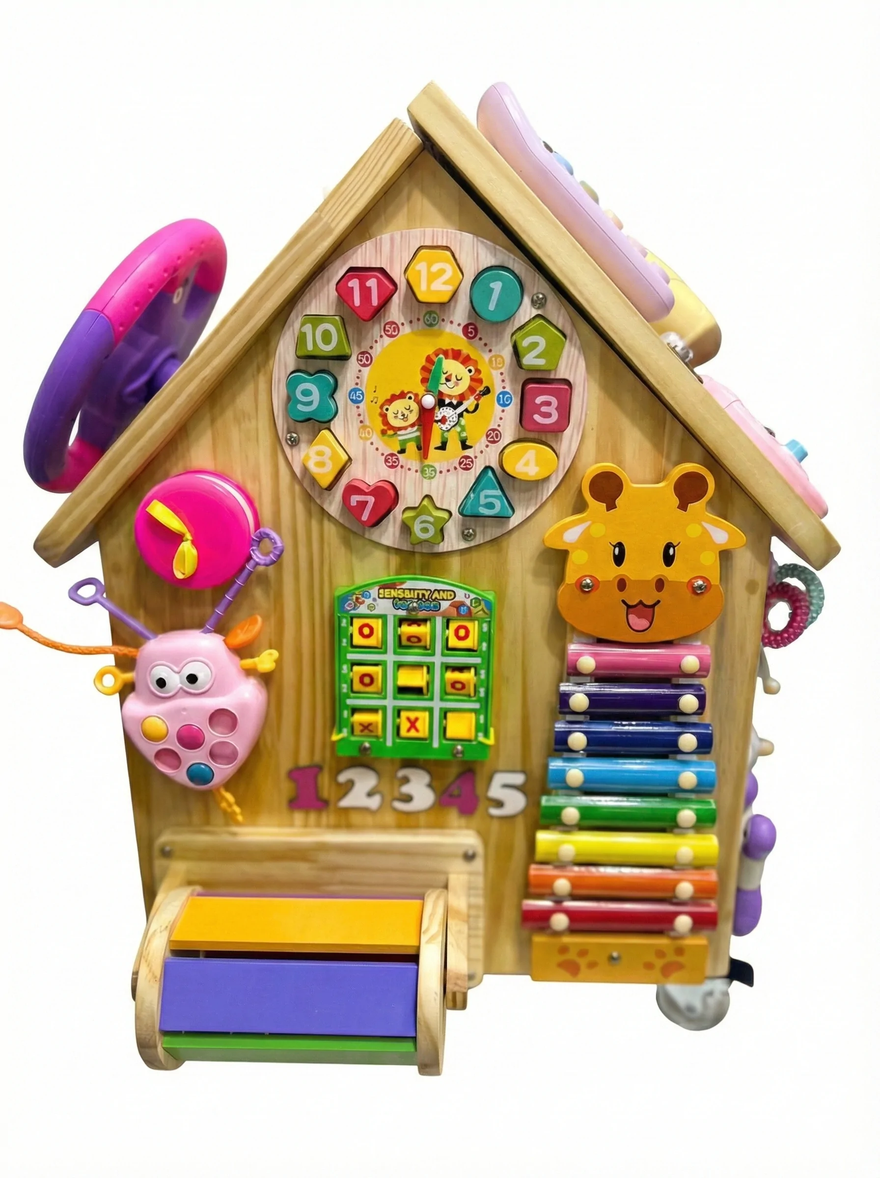 🔹 Coordenação Motora e Raciocínio – Travas, fechaduras, engrenagens e botões ajudam a desenvolver habilidades essenciais para o crescimento.